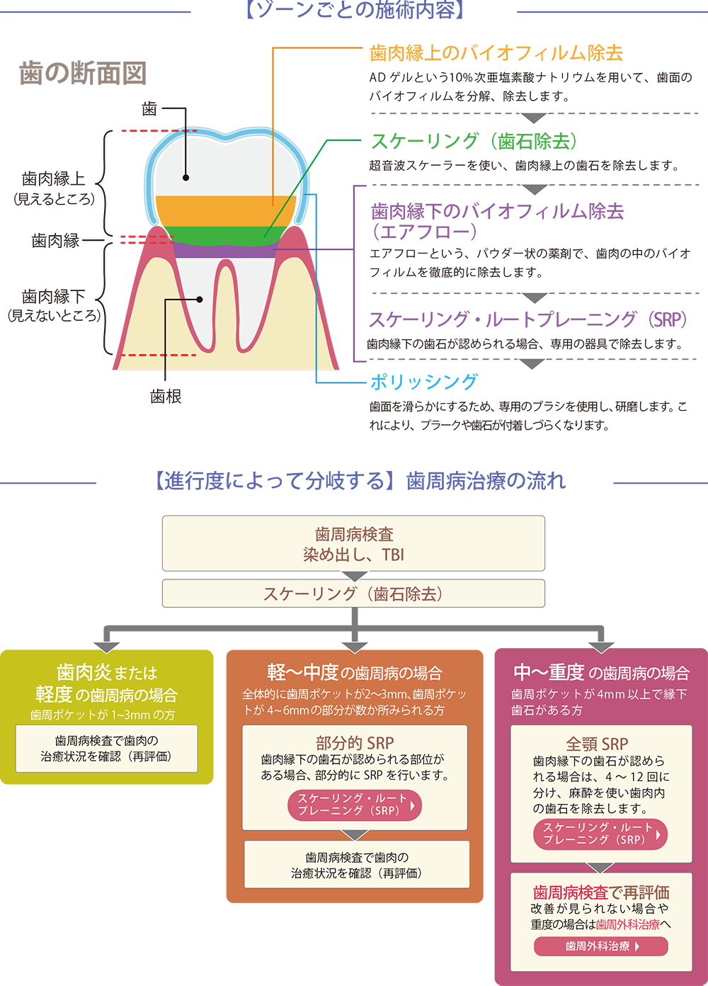 歯周病は歯と歯ぐきの間に汚れが溜まって、歯周ポケットという溝が形成され、そこに炎症が起こる病気です。サイレントディジーズ(Silent Disease)とも呼ばれ、知らず知らずのうちに症状が進行し、悪化すると歯が抜け落ちたり、全身疾患のリスクを高めたりすることが分かっています。